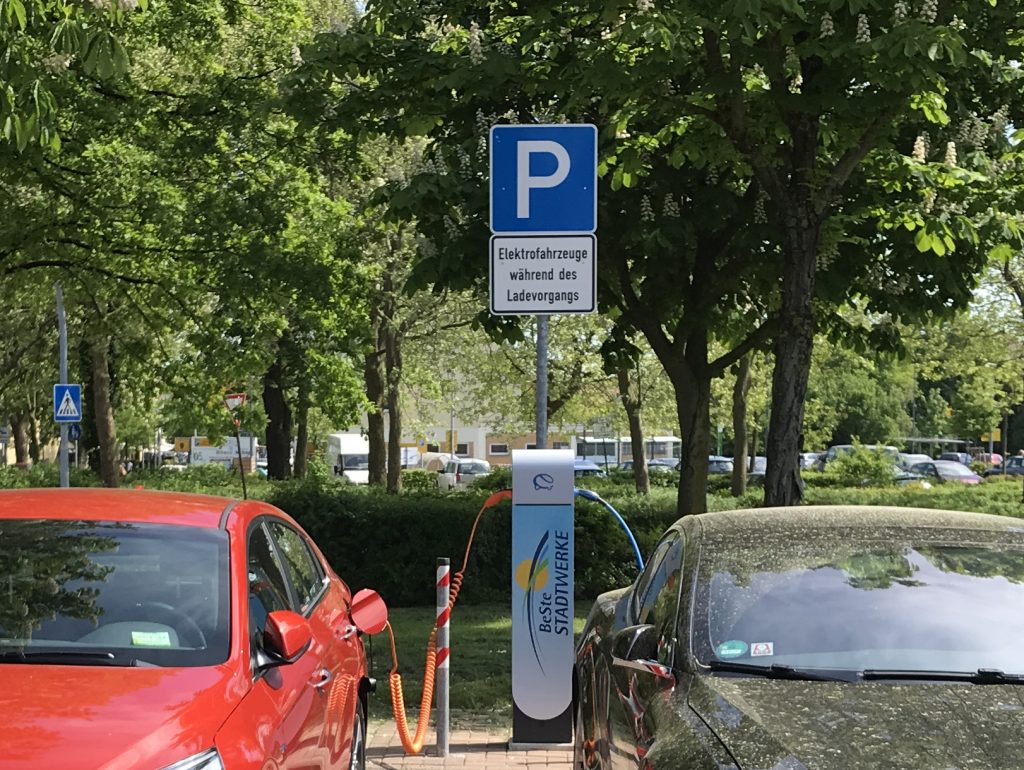 Bei der zweiten Ladesäule sieht es leider nicht ganz so gut aus. Sie liegt genau am Neustadt-Marktplatz, wo Parkplätze Mangelware sind. Dazu ist die Ladesäule am Rand einer Parkplatz-Reihe platziert, so das es eigentlich nur einen halbwegs offiziellen Parkplatz direkt vor der Säule gibt. Man kann es auf diesem Foto etwas erahnen: