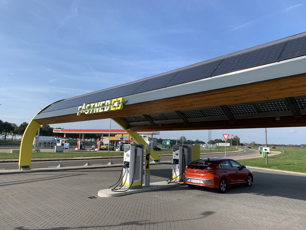 Der erste Halt nach nur 120km in Dissen an einer Tankstelle (!) wurde für ein mitgebrachtes Frühstück genutzt und dauerte länger als geplant. Eigentlich wollten wir bei 83% weiter, auch wenn der Strom kostenfrei war. Aber als wir mit dem Essen durch waren war der Akku schon zu über 90% gefüllt - soviel zu “man steht beim Laden dumm rum und wartet genervt”. Wir wurden auch kurz von einem Einheimischen angesprochen, was dann sehr an voccmoccers Video erinnert hat. Der zweite Stop war dann schon 83km später bei Allego in Emsbüren. Hier reizte das große Gartencenter mit Weihnachtsausstellung zum Vertreib der Ladeweile. Auch hier haben wir den Zeitplan nicht einhalten können: aus den geplanten 15 Minuten wurden 30, und dabei haben wir schon ziemlich gehetzt. Bezahlt haben wir hier mit Maingau, wie auch auf allen folgenden Ladevorgängen in Holland. Letzter Stop auf der Reise war dann nach 150km, kurz vorm Ziel bei Fastned in Holland. Nette Station, auch hier klappte alles mit Maingau.