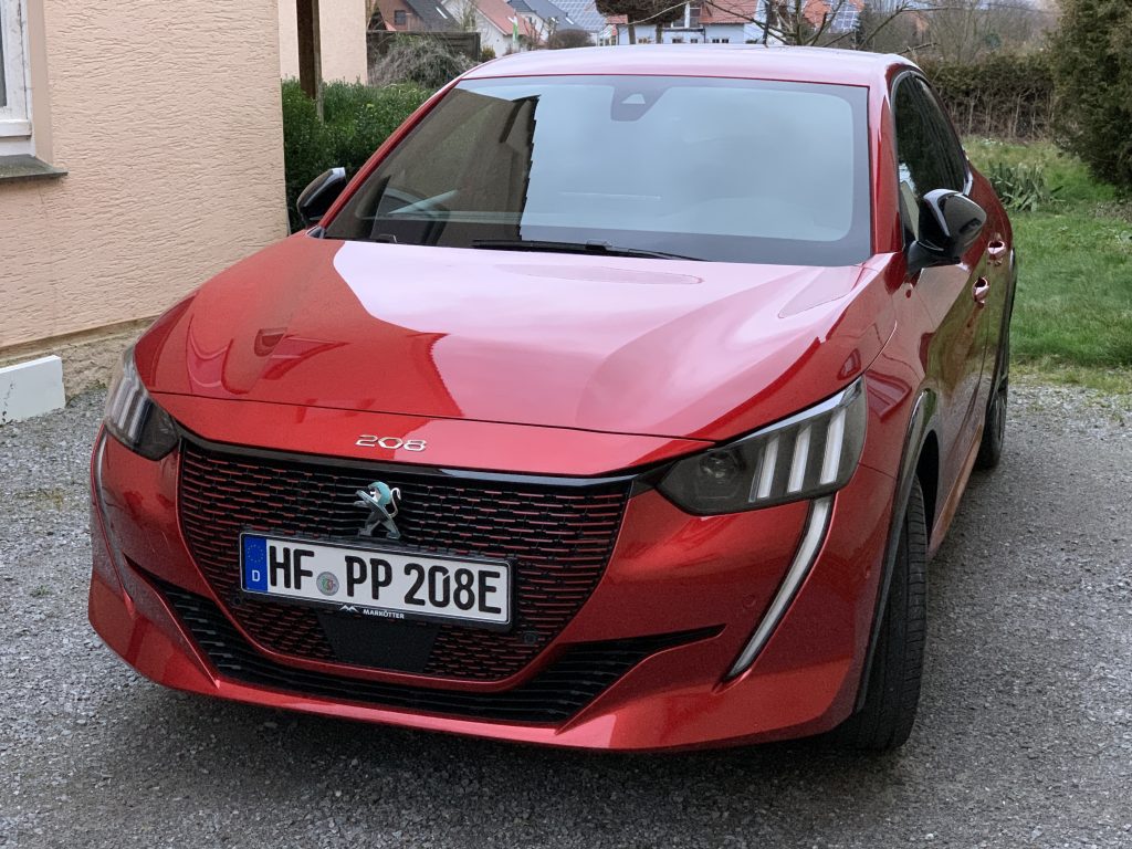 Am letzten Wochenende war es endlich soweit: recht kurzfristig, mit einem halben Tag Vorlauf, konnten wir uns den e-208 beim Händler abholen und bis heute morgen ausführlich testen. Uns erwartete ein wunderschöner e-208, Allure/GT-Line Ausstattung mit einigen zusätzlichen Extras. Leider fehlten aber doch einige Ausstattungen, insbesondere das ACC haben wir vermisst.