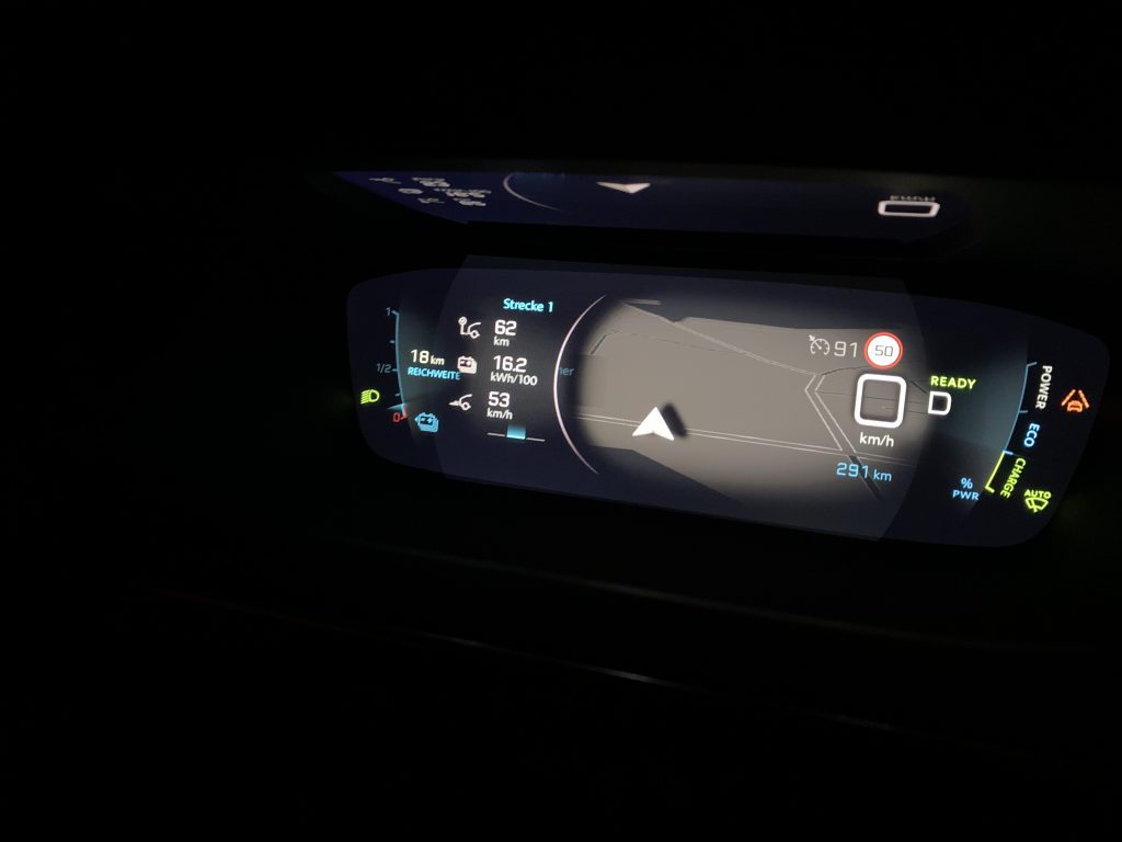 An das kleine Lenkrad und die Position des voll digitalen Kombiinstrumentes gewöhnt man sich schnell, das Lenkrad liegt auch super in der Hand. Das Bedienkonzept des Fahrzeugs unterscheidet sich durchaus von VW oder anderen Herstellern, aber das ist sicher nur eine Gewöhnungsfrage. Die Restkilometeranzeige beispielsweise springt erst in 10km Schritten, und unter 50km Restreichweite dann in 2km Schritten. Eine Prozentanzeige für den Akkustand haben wir im normalen Fahrbetrieb nicht gefunden.