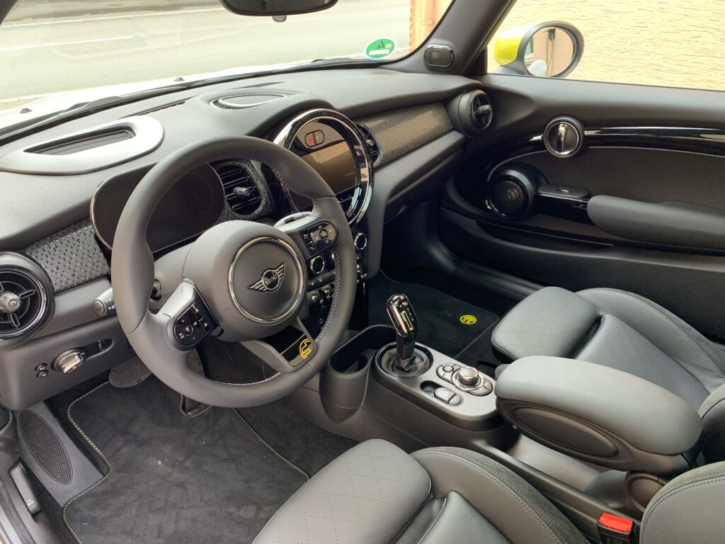 Der Innenraum ist Mini-Typisch. Im Gegensatz zum Peugeot e-208 reicht der Platz hier allerdings auch für meine Körpergröße. Die Verarbeitungsqualität und die Materialien sind auf gutem Niveau, und es gibt sogar noch richtige Schalter für alle wichtigen Funktionen. In der zweiten Reihe ist der Platz dann aber auf dem Level eines reinen Zweisitzers, da ist nicht viel zu holen. Auch der Kofferraum ist eher “Mini”, was den Wagen dann durchaus auf die unpraktische Seite bringt. Den elektrischen Mini gibt es übrigens ausschließlich als Dreitürer, was den Zugriff (vom Einstieg mal ganz zu schweigen) auf die zweite Sitzreihe schon sehr schwer macht.