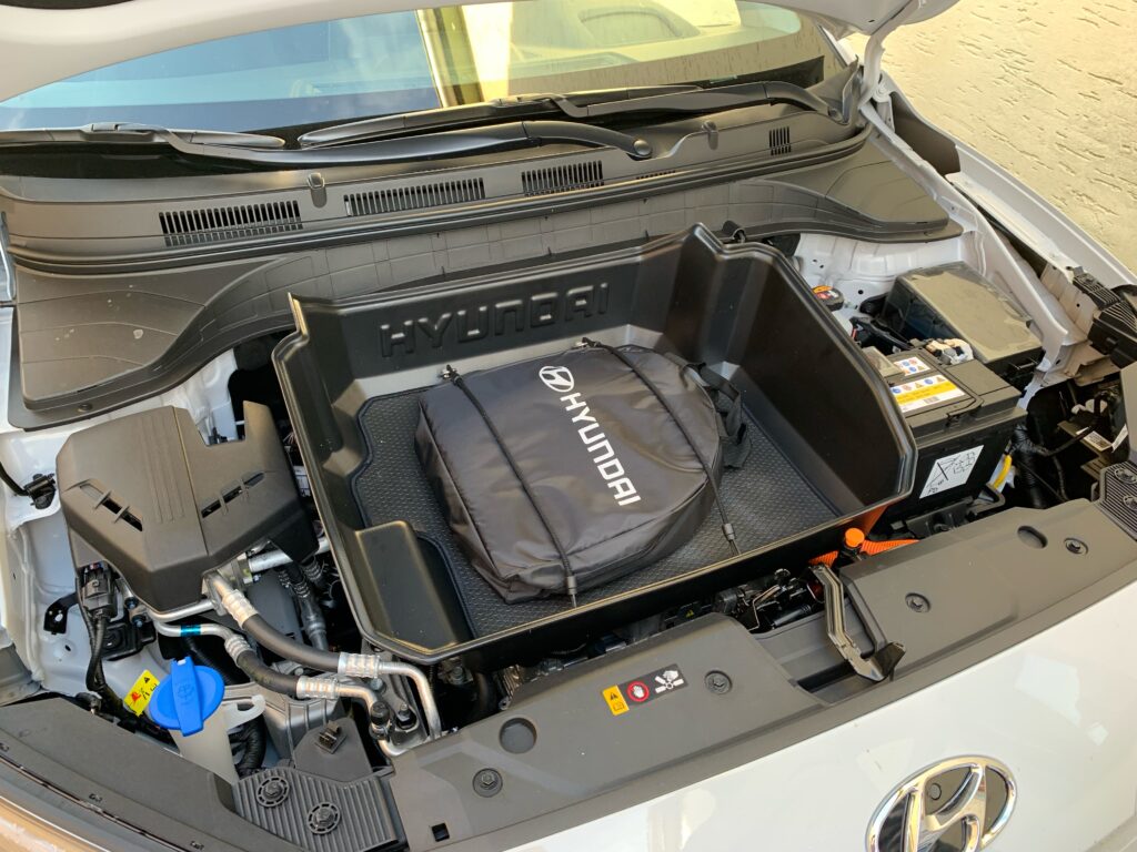Die erste “Tuning”-Maßnahme ist auch schon erfolgt, wir haben den original Frunk von Hyundai eingebaut, und die Ladekabel dort untergebracht.